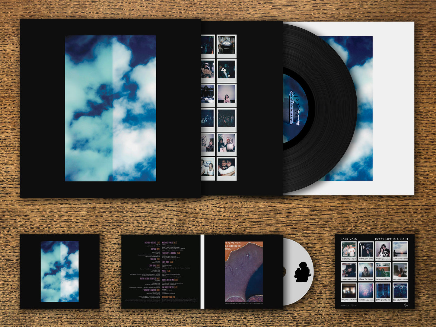Meanwhile Void marches on, as a tireless organizer of local music events, bouncing around and often living in DIY venues, depending on the latest apartment displacement. With an ubiquitous polaroid camera in tow, they also document each communal happening with a single shot (and often a blinding flash bulb): a memory and metaphor for lives illuminated preciously, singularly, ‘imperfectly’ in the moment. Dozens of these polaroids adorn the album’s back cover and inner sleeve art in grid-like montages, as a fitting analog for the careful construction, grainy intimate materiality, and ephemeral feeling of these songs. Every Life Is A Light is Joni Void’s most coherent and congenial record while relinquishing none of their experimentalist acumen as a producer or emotional attunement as a composer. Instead these qualities flourish, on an album that lights a humble flame for the fragile promise of homespun creative collaboration as unalienated labour and therapeutic communion, making an enchantingly idiosyncratic contribution to downtempo sample music along the way.