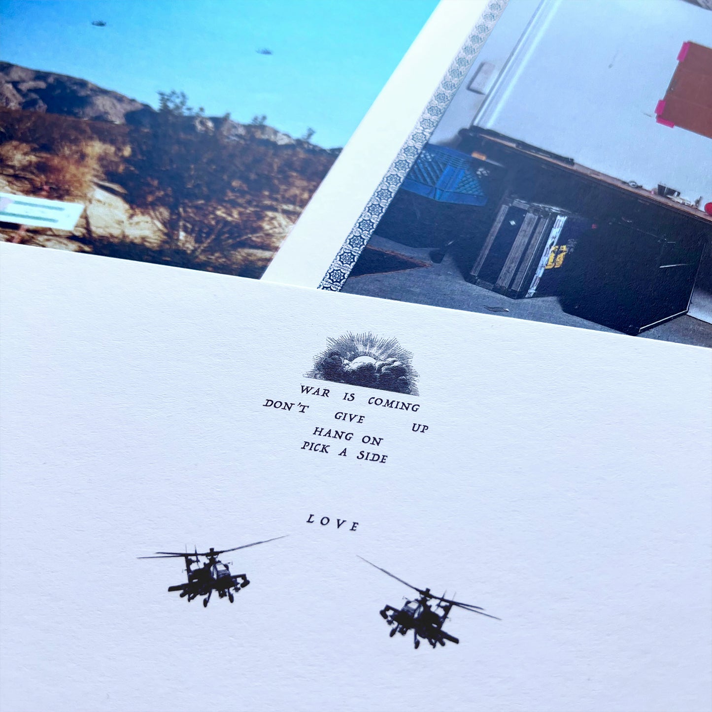 2x180gLP pressed at Optimal (DE) in 350gsm gatefold jacket + 300gsm inners printed LE-UV on uncoated Alaska artboards + DL card.