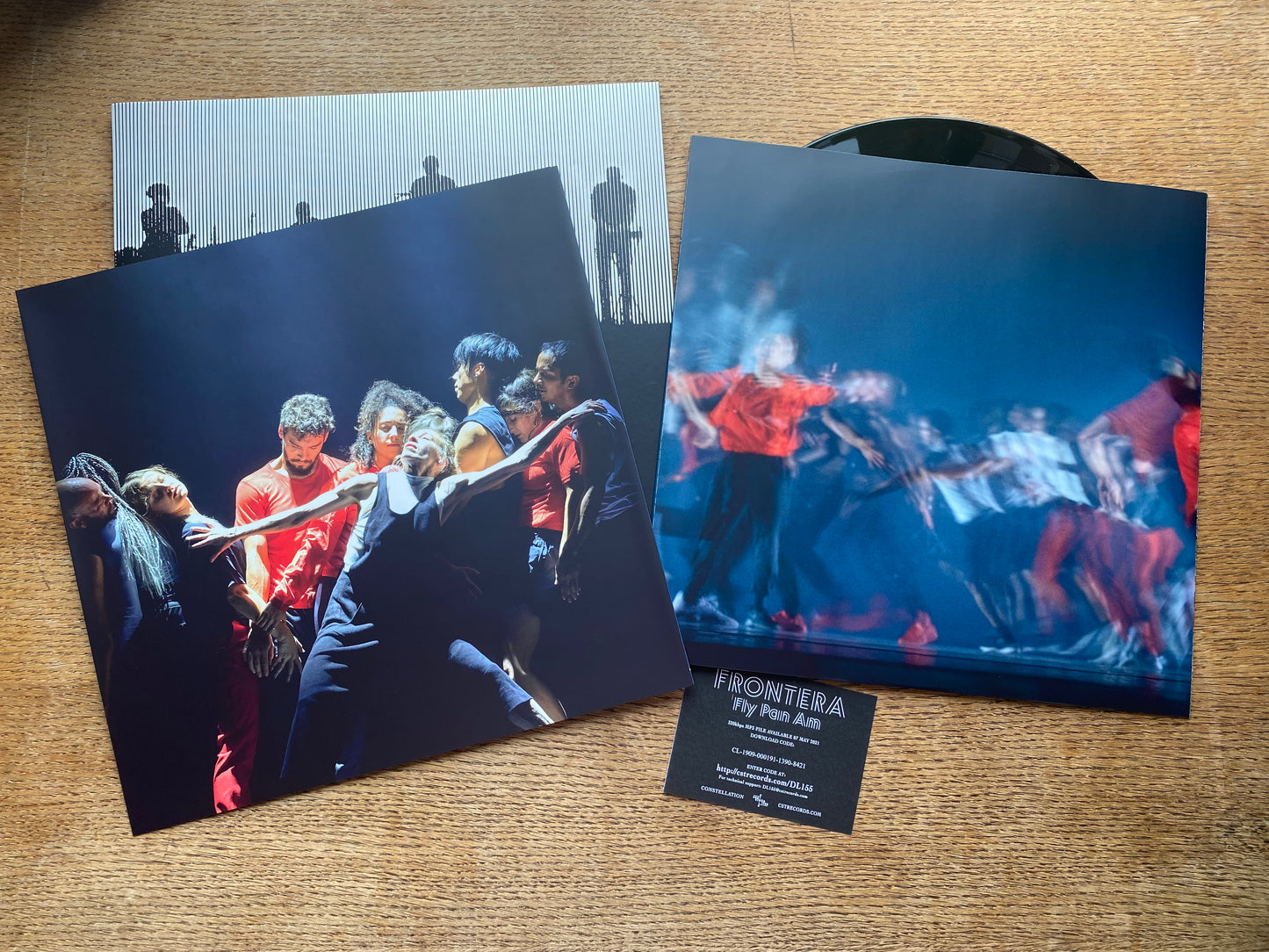 Frontera is exquisitely packaged and showcases half a dozen striking full-colour photographs from the dance piece: the deluxe 180gram vinyl edition is printed with UV matte varnished inks, including an artworked inner sleeve and 12”x36” fold-out art insert with liner notes; the CD mini-gatefold jacket is printed on premium Spectro artboard and includes a 6-panel art insert.