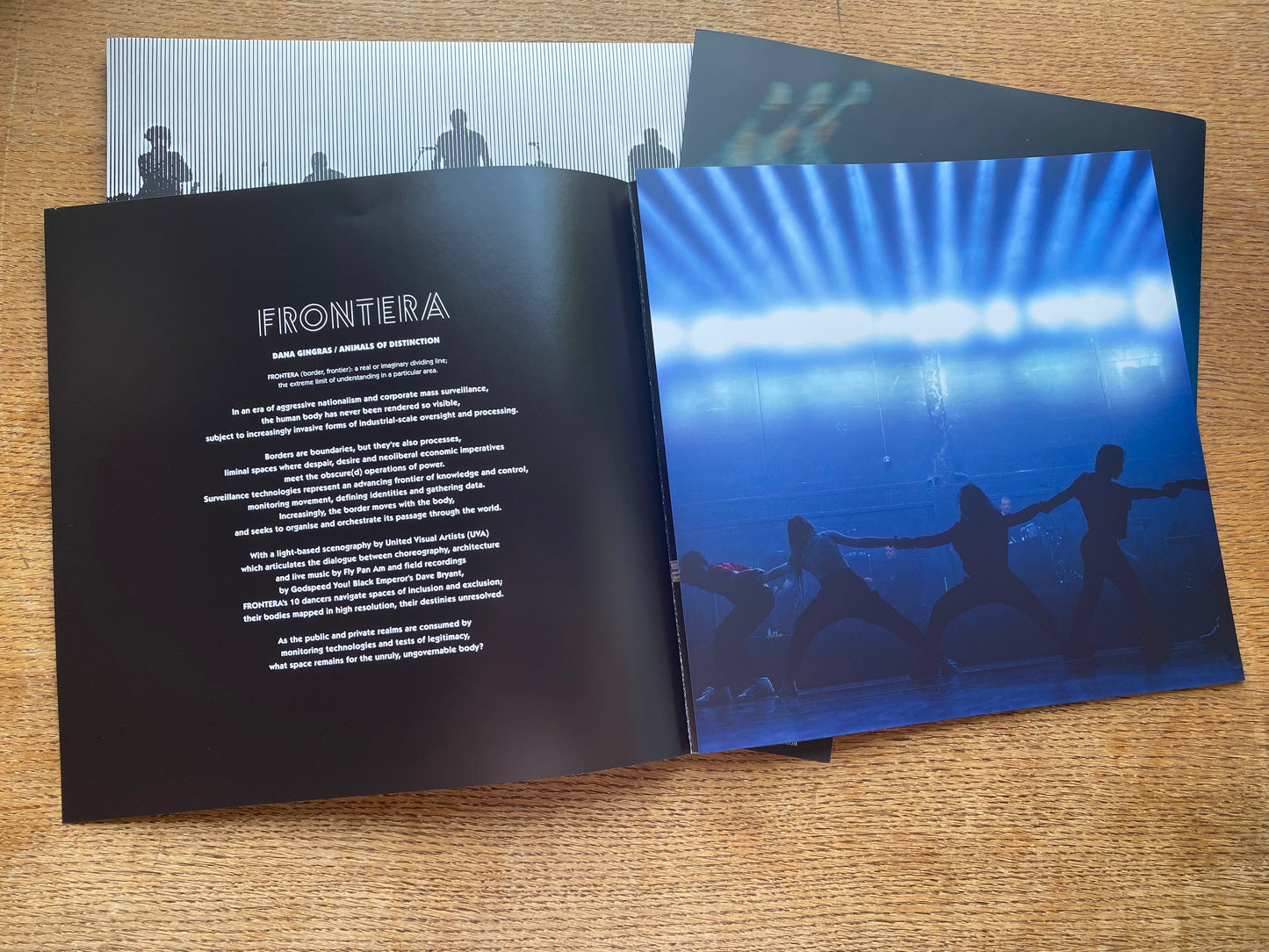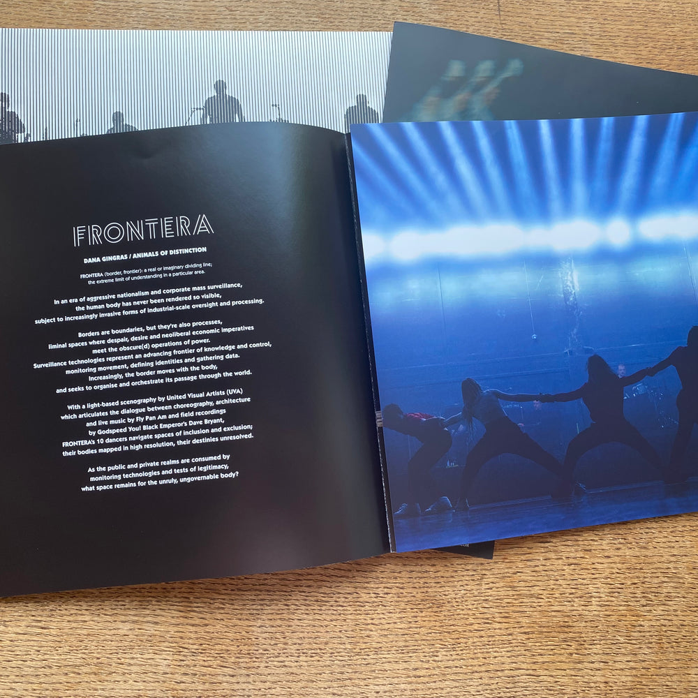The Frontera album tracks faithfully to the narrative of the original work, where eight movements (featuring a company of 10 dancers) flow from controlled chaos and tensely choreographed kinetics to slow, wrenchingly austere set pieces. This tremendous multi-media performance – framed by the stark and peerless lighting design of United Visual Artists – is a discerning and deeply affecting meditation on borders and surveillance, resistance and separation, solidarity and cooperation; bodies blocked and restrained, monitored and pursued, hiding and escaping, yearning and overcoming.