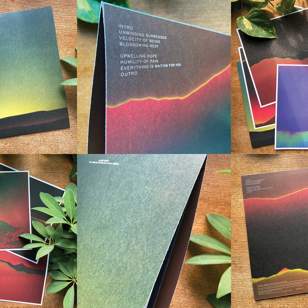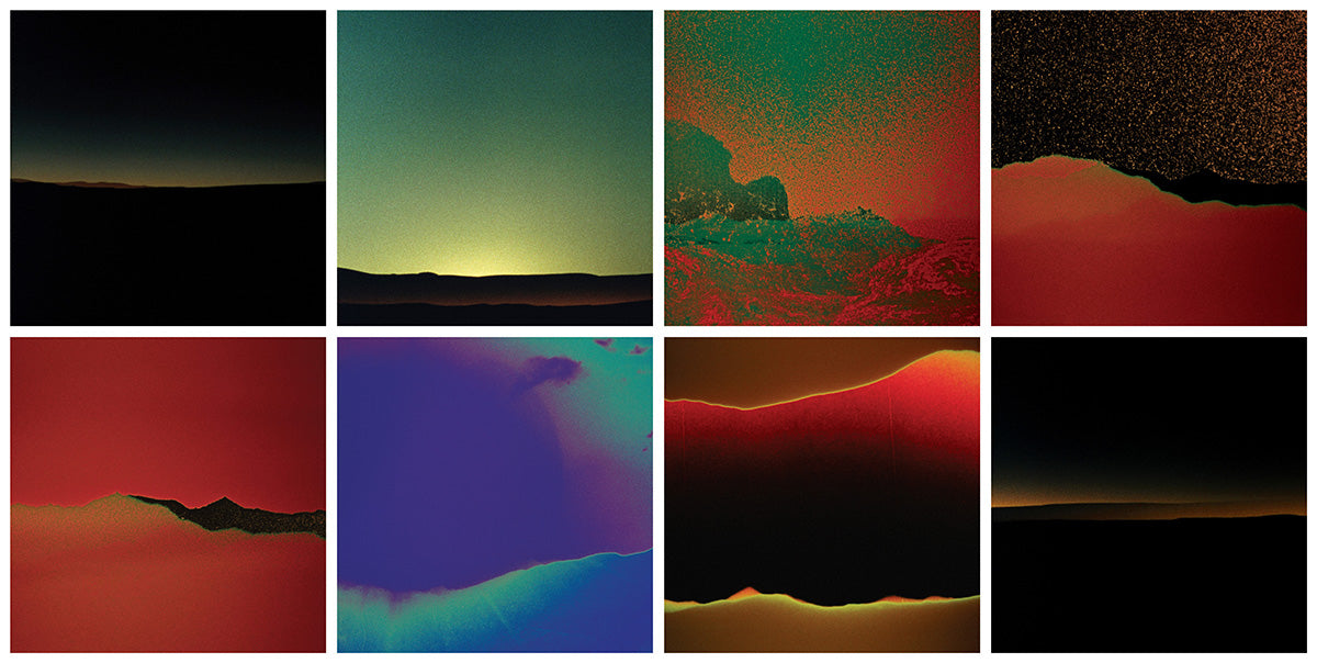 Deluxe vinyl is a 180gram midnight black pressing from Optimal (DE). 20pt uncoated paperboard jacket. Inside jacket painted in rust brown colour flood. Four 12”x12” art print inserts printed on uncoated 100lb text featuring analog film stills by renowned experimental filmmaker Daïchi Saïto; a series of eight images corresponds to each album track.