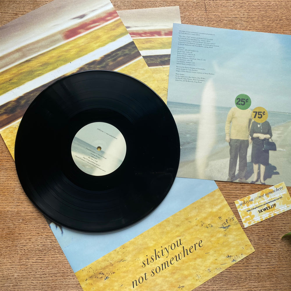 Huebert ended up with a dozen songs written under this influence, but shelved the recordings while real life took over: driven from Vancouver by skyrocketing rents and zombie capital that was increasingly leaving the city a shell of its former self, he relocated to Toronto with his young family. Returning to the material once resettled, Huebert finished up the record with contributions from various guest musicians on strings and horns (including cellist and labelmate Rebecca Foon from Saltland/Esmerine, and Destroyer regulars Joseph Shabason and JP Carter on horns and woodwinds). The result is a beautifully restrained and unvarnished song cycle of tunes anchored by acoustic guitar and brushed drumming, detailed with delicate textures, spartan melodic overdubs, and Huebert’s distinctively forthright, whisperingly confidential vocal delivery. From the austere Velvets-chug of “What Ifs” to the Elephant 6-inspired looseness of “Her Aim Is Tall” and “Stop Trying (jubilant reprise)” and the sparkling hush of atmospheric twilight folk-inflected pieces like “Temporary Weakness” and “Silhouette”, Not Somewhere is delicate and discreet yet wonderfully assured – a profoundly humble, wistfully observational and meditatively personal return for Huebert’s Siskiyou project.