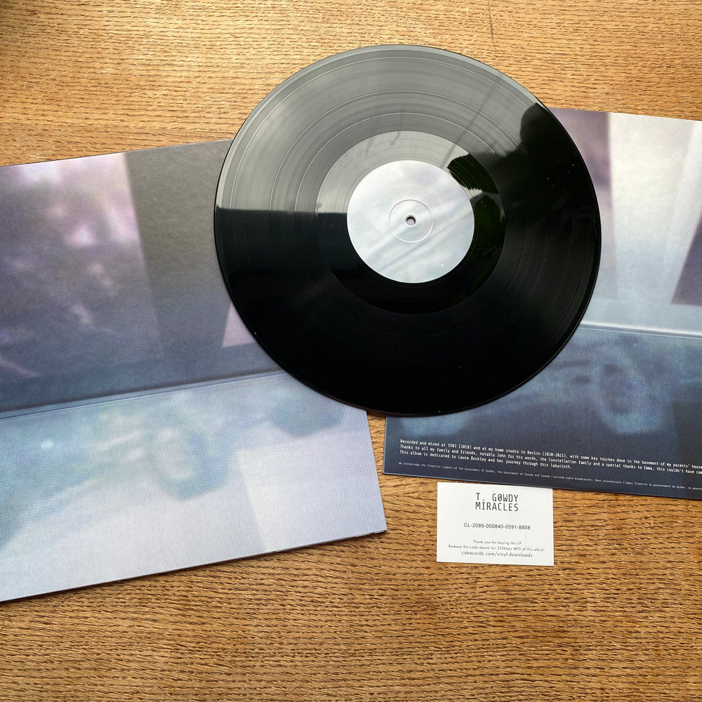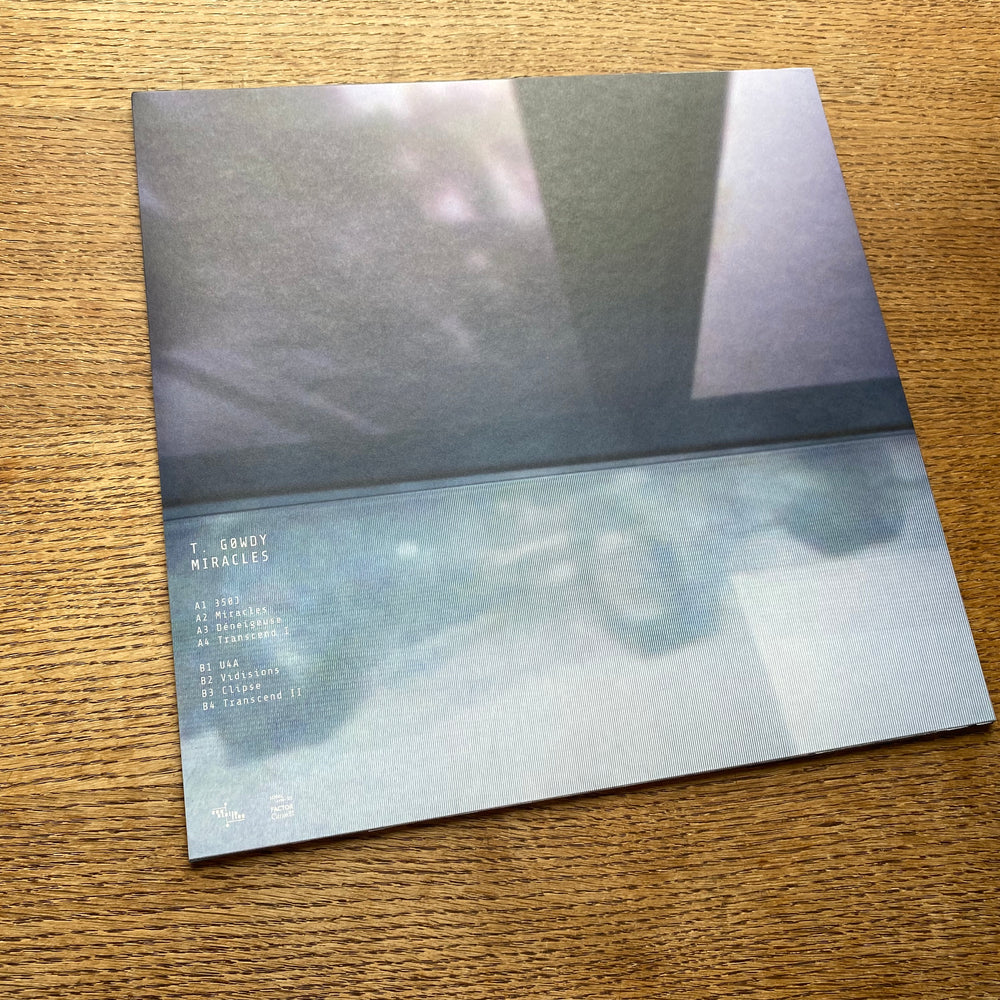 Where Therapy With Colour was strictly and rigorously a set of stereo live performances, Miracles fuses iterative—though still spartan—layers of performance. “Therapy With Colour was about healing through self-hypnosis; Miracles is about forging a future with memory through subjection to trigger mechanisms,” notes Gowdy. The result is a captivating collection of minimal IDM and oscillated electronics from the Montréal/Berlin producer, working primarily in a 120-140 BPM zone of tonal percussion and corrugated pulse. Gowdy’s sensibility and sound palette gets deeper and dirtier, summoning new pathways of alluvial flicker and abraded euphoria. As the album progresses, low-pass gate vactrols coalesce into a clear and vital theme, conveying immanence through woody timbres at times reminiscent of the Shinrin-yoku aesthetic (Japanese ‘forest bathing’), though always with a grainy transcendence rather than invoking any clean pure sheen. Gowdy consistently heats and heightens the presence of each component in the mix, balancing different elements in democratic compression/distortion, attaining an unornamental and earnest form of mantric-industrial majesty. Miracles is live, corporeal, activated electronic music of the highest caliber, deployed with monastic and meditative focus.
