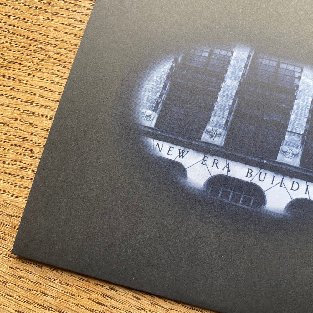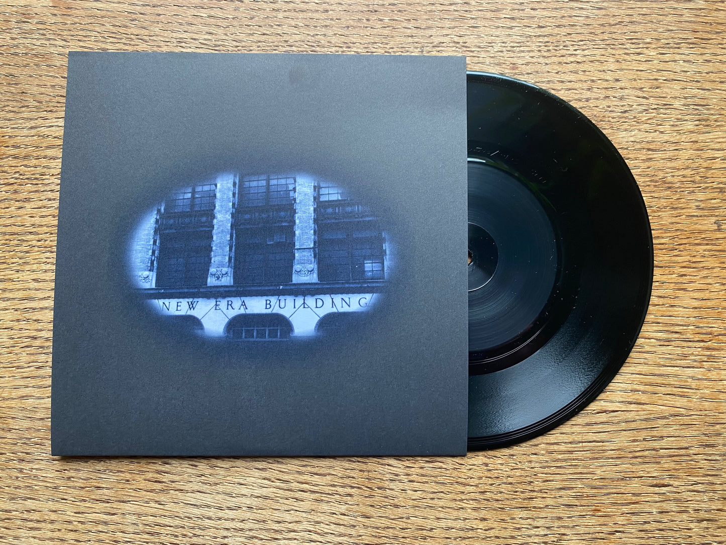 7" jacket is unglued foldover offset print in duotone inks on cardstock paper.