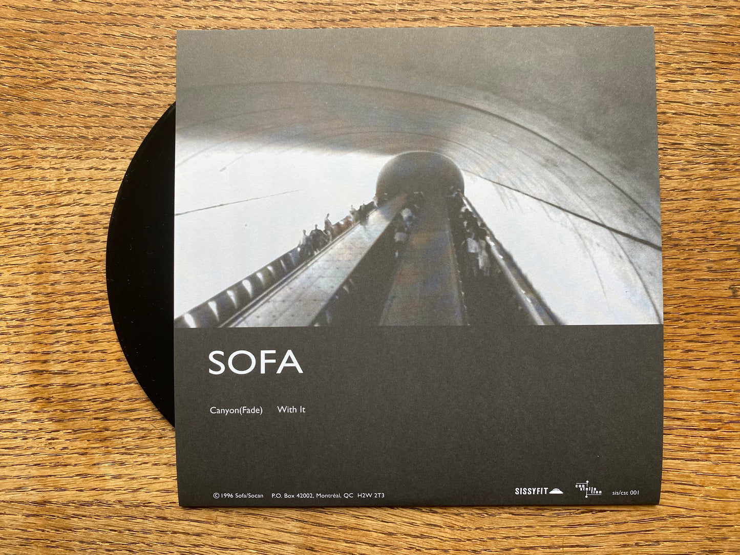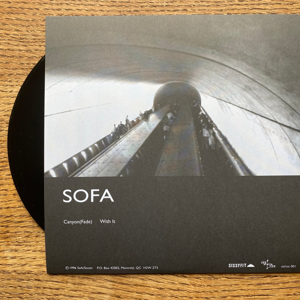 Ground zero in the Constellation catalogue. This seven-inch by Sofa contains two songs taken from one of the band’s 1995 cassette-only releases. Neurotic noisebursts recorded live to 2-track. Slinky riffs on “With It” and galloping clang on “Canyon (Fade)” from this disturbed rock quartet.