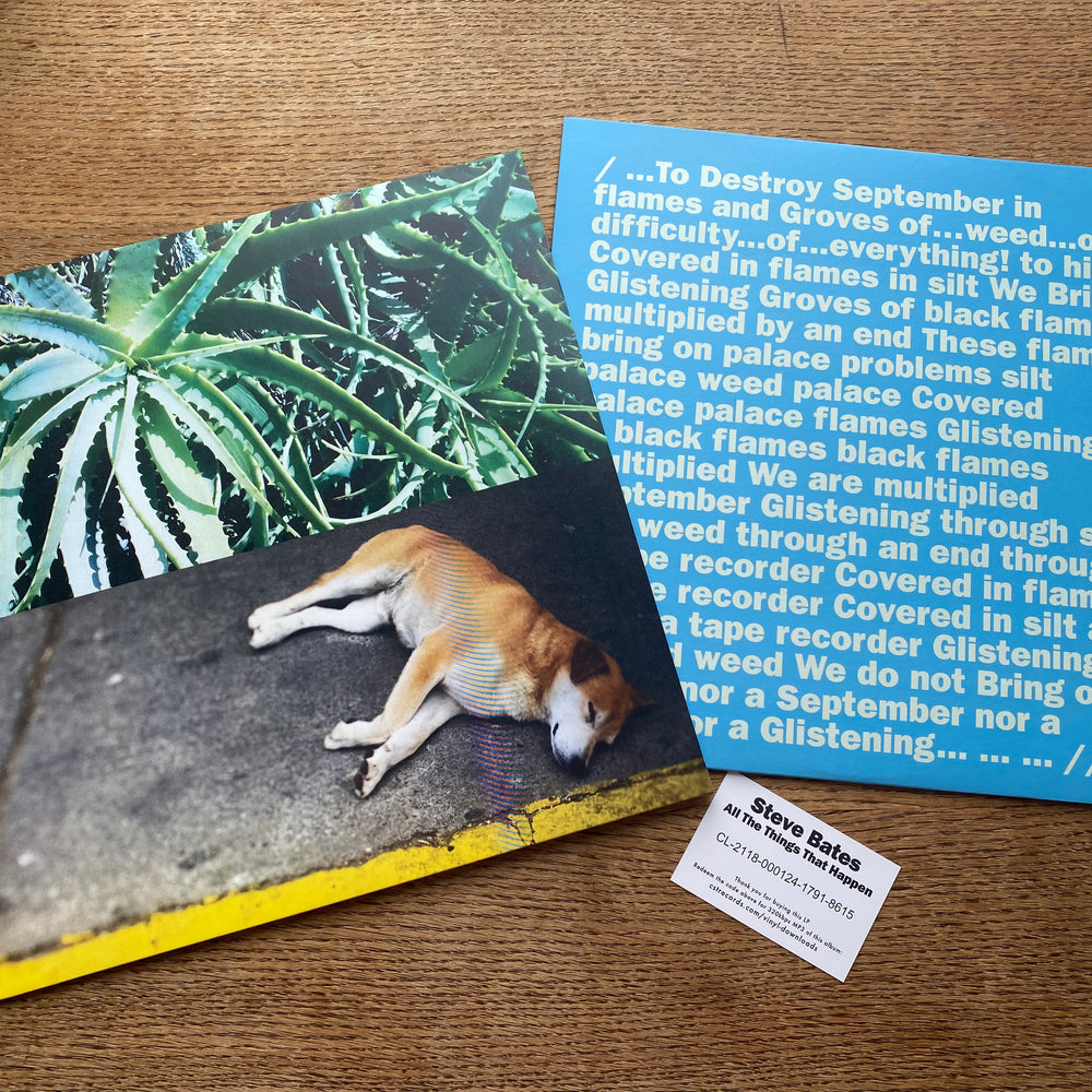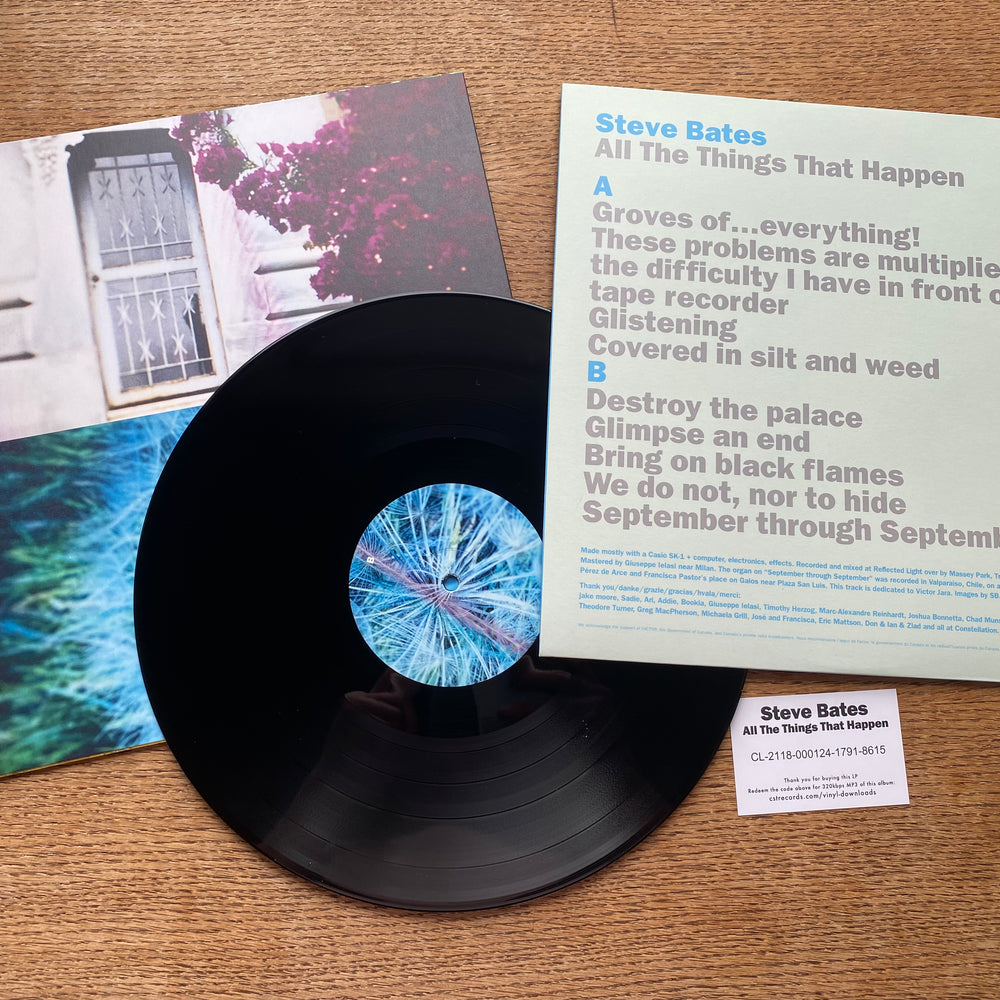Musician and sound/video installation artist Steve Bates presents a striking solo ambient/noise album of melodic smear, radiostatic blur, panoramic noise clouds and dissolving tones. Made primarily with the self-imposed limitation of a Casio SK-1, All The Things That Happen showcases the more deliberate, intensive, maximalist side of Bates' wide-ranging sonic aesthetic and practice. An isolation record (like so many), it combines an ineffable melancholy with claustrophobic tension and simmering political rage. Constructed from layers of glistening distortion-drenched melody, pulsing and droning oscillation, bursts of blown-out chords, sweeps of static and sheets of crackling hiss, Bates has made a dynamic, ardent, iridescent noise album of impressive depth and underlying devastation.
