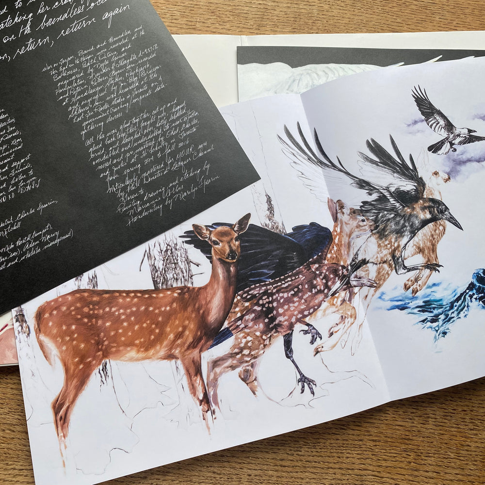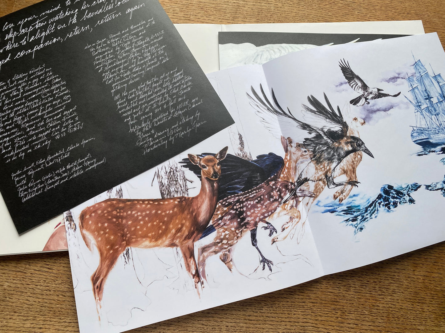 CD edition comes in a custom mini-gatefold jacket printed on 100% recycled Orford textured paperboard with a printed inner dust sleeve and 5"x15" fold-out credit insert. Featuring original commissioned artwork by Marianne Collins.