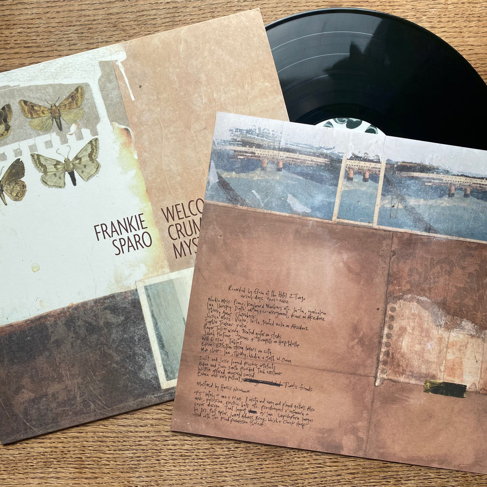 Frankie Sparo’s third release is a little masterpiece of highly original, stylistically diverse songwriting. Sparo’s debut record My Red Scare was comprised mostly of songs played solo, unadorned, wrought only from guitar, voice and beatbox. The two years between saw forays into broader instrumentation and collaborations with additional players. A tour with A Silver Mt. Zion yielded a set of string and digital arrangements (some of which are documented on 2001 EP Arena Hostile) and many of these same players contributed to the songs on Welcome Crummy Mystics. Meanwhile, an official second member in the person of Nadia Moss (piano, keyboards, backing vocals) joined the fray and her playing, singing and arranging can be heard throughout this record.