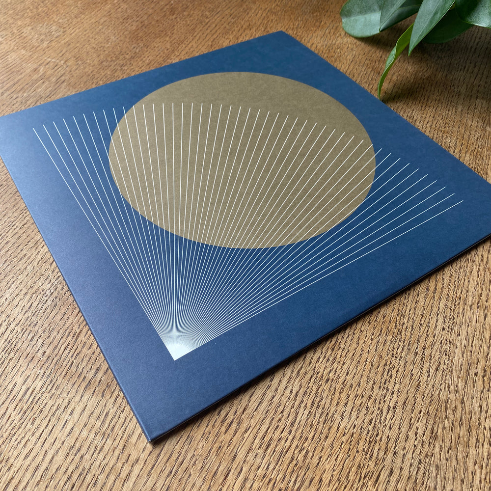 Deluxe LP is 180gram heavyweight audiophile midnight ultrablack vinyl pressed at Optimal (Germany) and comes in a thick 24pt/450gsm jacket printed in 2 spot colours (blue + metallic bronze) on uncoated 100% recycled paperboard, with a 12"x24" art print poster, and 320kbps MP3 download card.