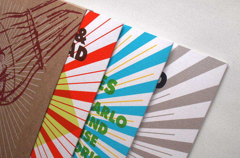 Each album comes in its own 2-3 colour screenprinted jacket accompanied by a screenprinted poster, and the three albums are contained in a 2-colour screenprinted slipbox hand-made from thick 100% recycled chipboard.