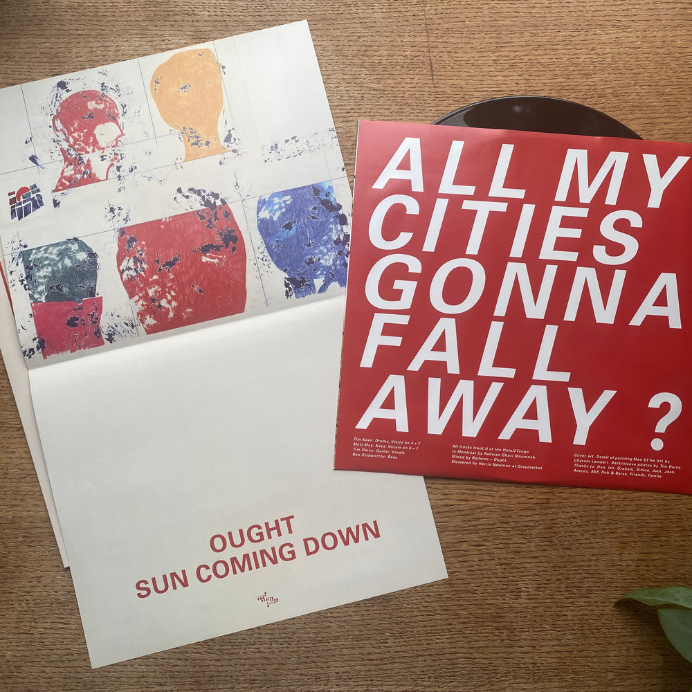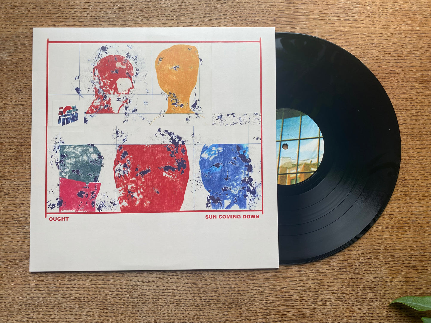 Sun Coming Down maintains the band's tight, twitchy and economical sound, with the unfussy, understated rhythm section of drummer Tim Keen and bassist Ben Stidworthy anchoring Tim Darcy's electric guitar and Matt May's fuzzed-out keys (sounding, as often as not, like a second guitar). Ought pursue an artistically apposite austerity in committing these new songs to tape, referencing the arid and unvarnished production of no-wave and early indie rock while balancing carved-out angularity against an evolving comfort with textural coalescences and measured pacing. It makes for an album that's consistently, insistently propulsive but also feels unhurried and pleasantly unhyped. Songs like "Beautiful Blue Sky" (already a fan favorite from live shows) and "Never Better" unfold with gradual and deliberate ebb and flow, where scratchy guitars play like dappled shards of light on gently roiling waves of bass and organ; "The Combo" and "Celebration" keep things crisp and concise. Darcy's voice and lyrics continue to distinguish and define the personality of the band: his blend of ironic detachment, declarative insistence, fragmentary stammering poetics, and the occasional direct aside to the listener, finds various ways to weave within or drive through the mixes.