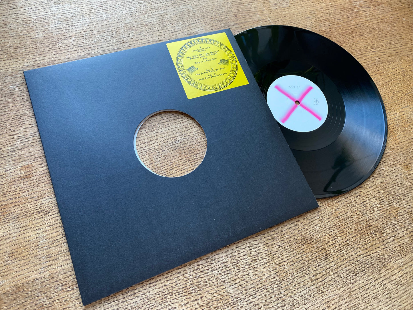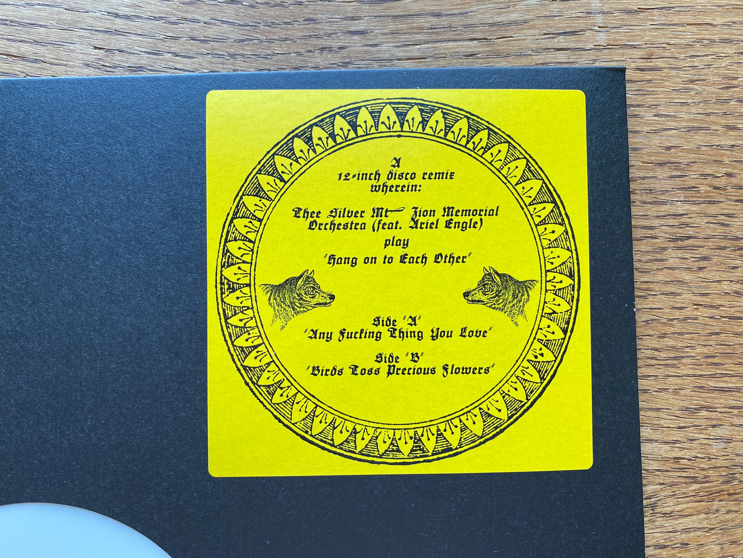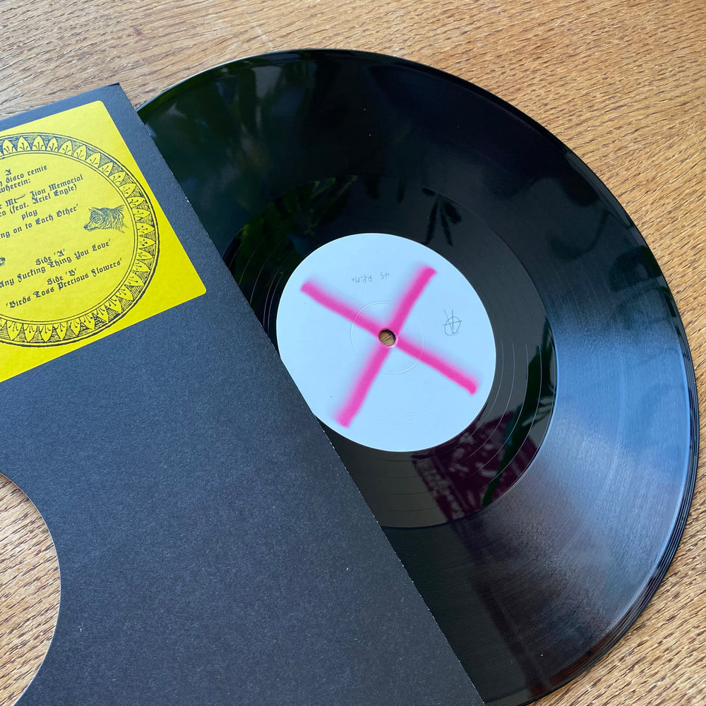 We made this thing like a for-real disco 12-inch, for to give to d.j.'s to play because we live in the kind of town where some d.j.'s maybe will. Much respect and much love to thee sweaty dancers, and the lost ones, and the ones who fell away.